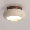 Gefertigt aus Travertin und Holz, strahlt diese kompakte Deckenleuchte ein sanftes Licht durch ihre ringförmige Form aus – ideal für Flure, Schränke oder minimalistisch gestaltete Schlafzimmer.