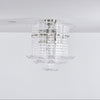 Handgefertigte klare Murano-Glasplatten, die in einem geschichteten Design für eine moderne, flache Deckenleuchte arrangiert sind. Perfekt für Schlafzimmer, Flure oder Wohnräume, die zeitlose Eleganz und eine helle Atmosphäre suchen.