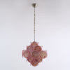 Dieser Kronleuchter präsentiert geschichtete rosa Glasscheiben mit sanften, wirbelnden Tönen und verströmt ein romantisches und einladendes Licht. Die einzigartige skulpturale Form verleiht Wohnzimmern, Essbereichen oder Schlafzimmern eine elegante Note. Künstlerisches Handwerk und sanfte Farbtöne verschmelzen zu einem Mittelpunkt, der sowohl modernen Flair als auch zeitlose Luxus in Ihr Interieur bringt.