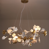Beim Kauf einer Leuchte erhalten Sie ein Deckentablett. Die Abbildung zeigt eine Kombination von 4 Leuchten. Sie können vier Leuchten bestellen und eine Deckenablage und vier Nieten für die obere Stromversorgung reservieren. - Länge 80 cm - insgesamt 66 Blätter: Große 18 Stück, Mittlere 23 Stück, Kleine 18 Stück, Große in Gold 7 Stück