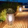 Die ausgehöhlte Rattan-Außenseite hat die Form einer alten Laterne, die die Außenlandschaft widerspiegelt, und das warmweiße Licht ergänzt die Szenerie.