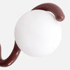 Ein gebogenes Metallrohr umschließt elegant die kugelförmige Lampe und bietet eine anspruchsvolle Interpretation des Jugendstils, indem es eine fließende und harmonische visuelle Verbindung zwischen beiden Elementen herstellt.