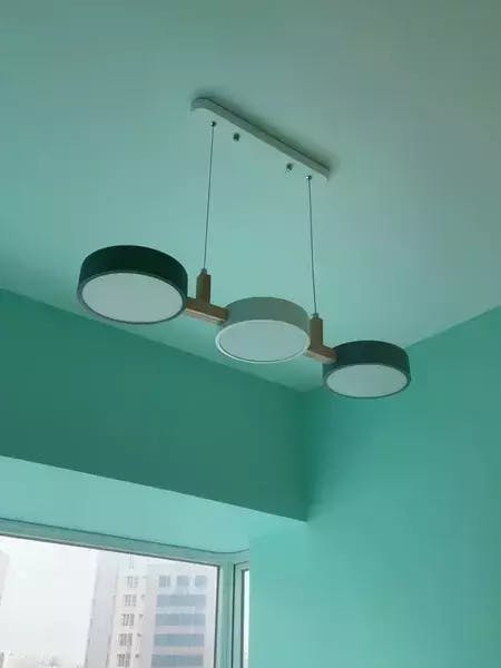 - Das schlichte Design mit einer warmen Morandi-Farbkombination macht diese Lampe perfekt für die Anwendung in der Heimdekoration in der Kücheninsel, dem Wohnzimmer, dem Esszimmer, dem Schlafzimmer und anderen Bereichen.