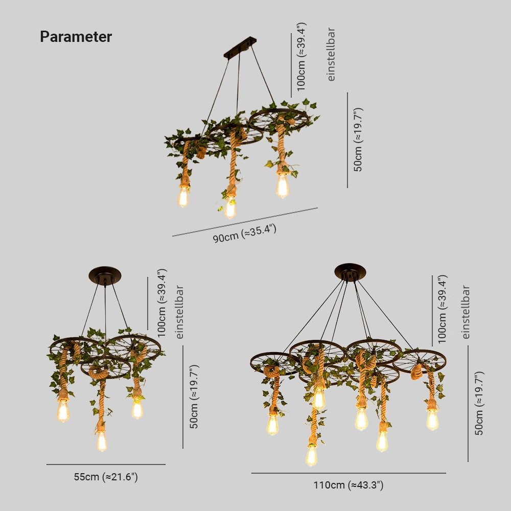 Valentina Industrieller LED Kronleuchter Schwarz Rattan Bar/Wohnzimmer
